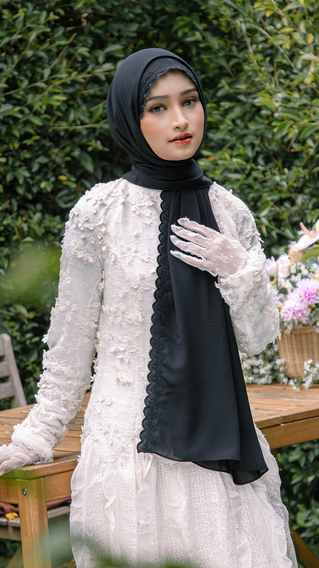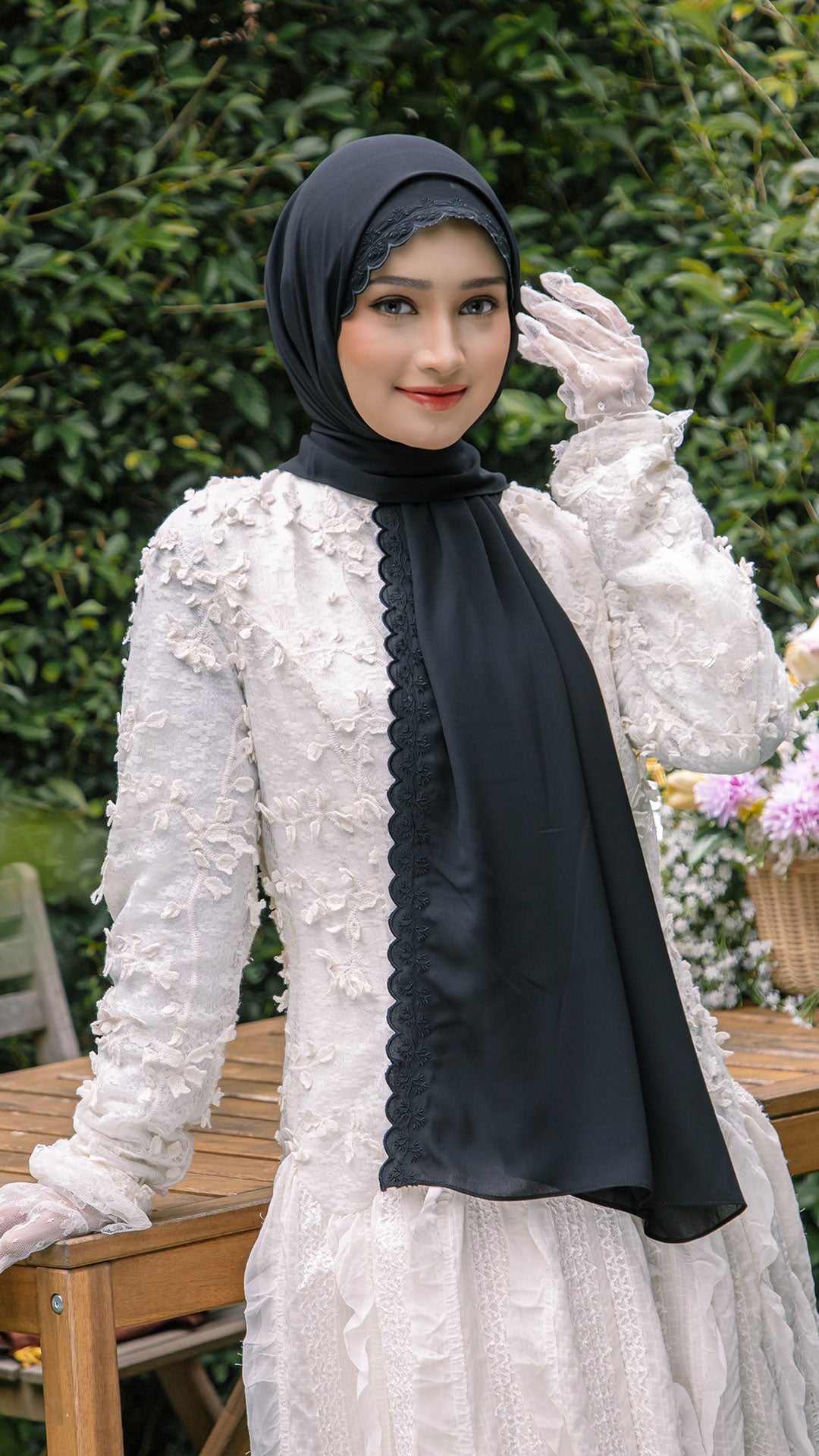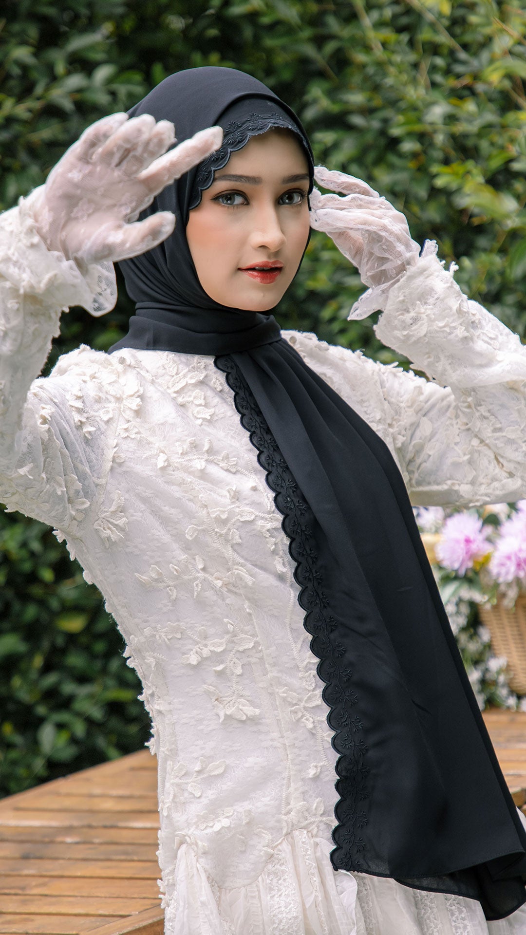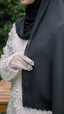 The shawl shapes effortlessly around the face, allowing for neat, structured styling or soft, flowy drapes depending on your preference. The elegant sulam (embroidery) detail inspired by the Teratai flower adds a subtle yet sophisticated charm a refined accent that elevates even the simplest outfit.