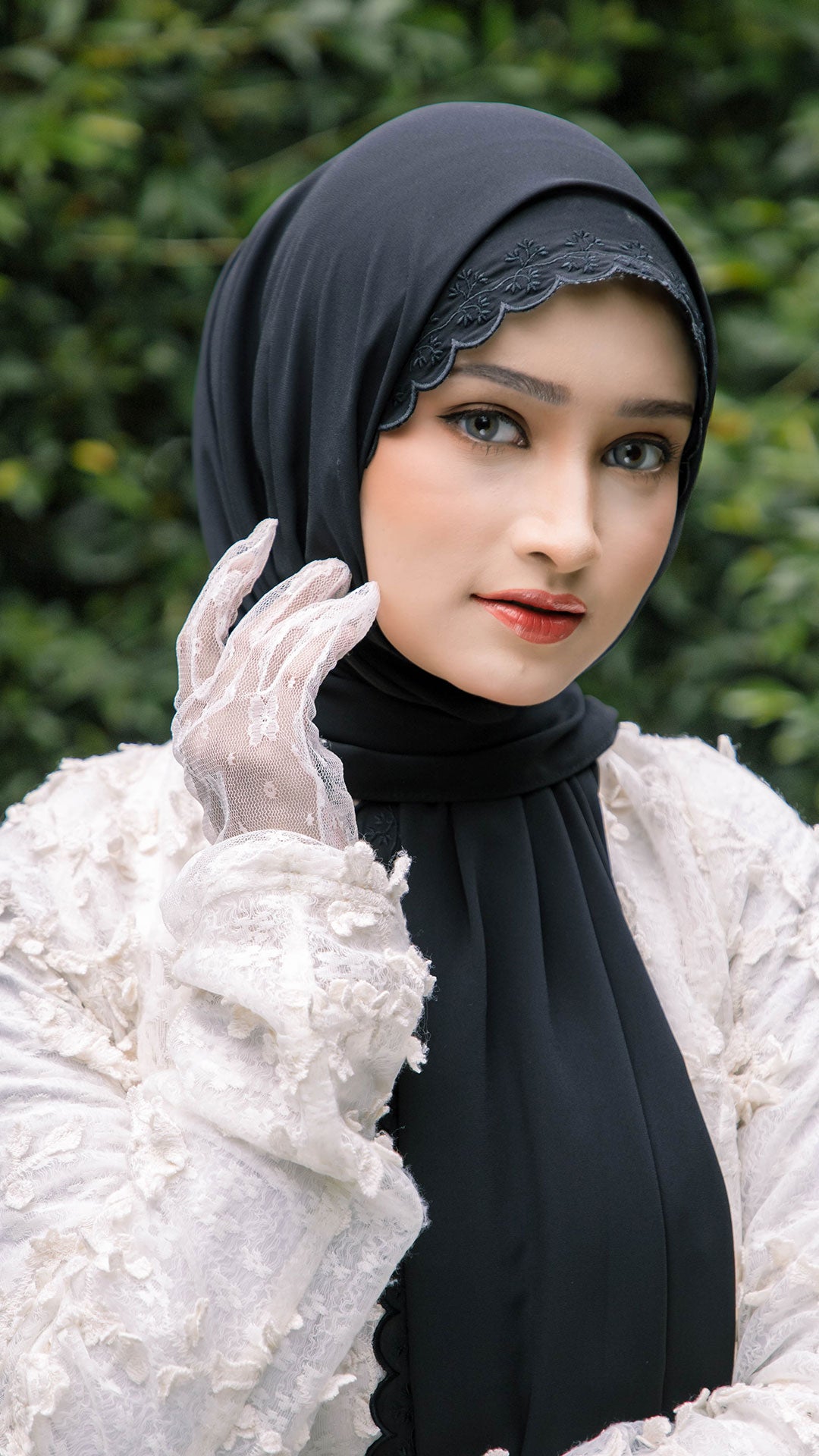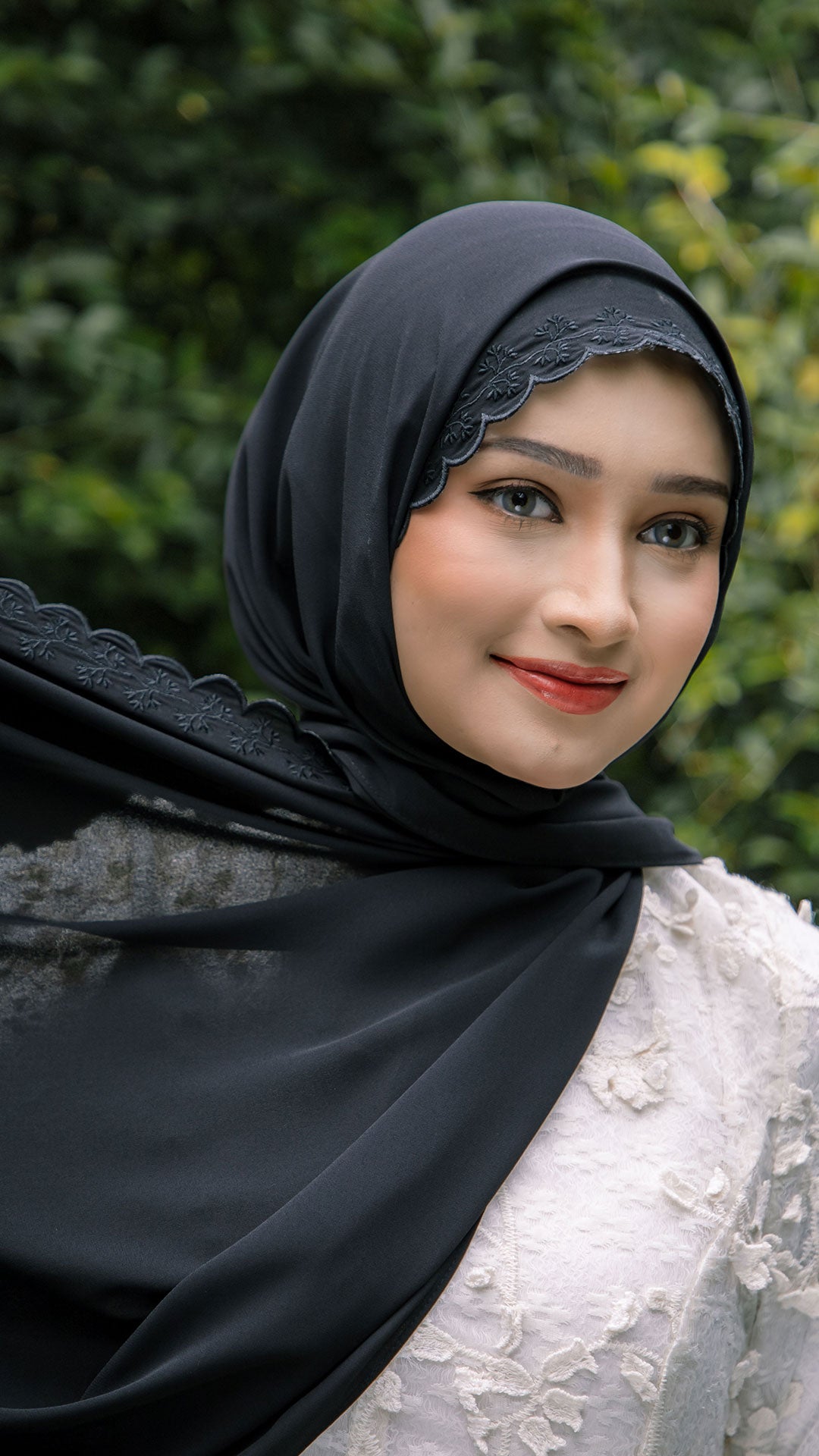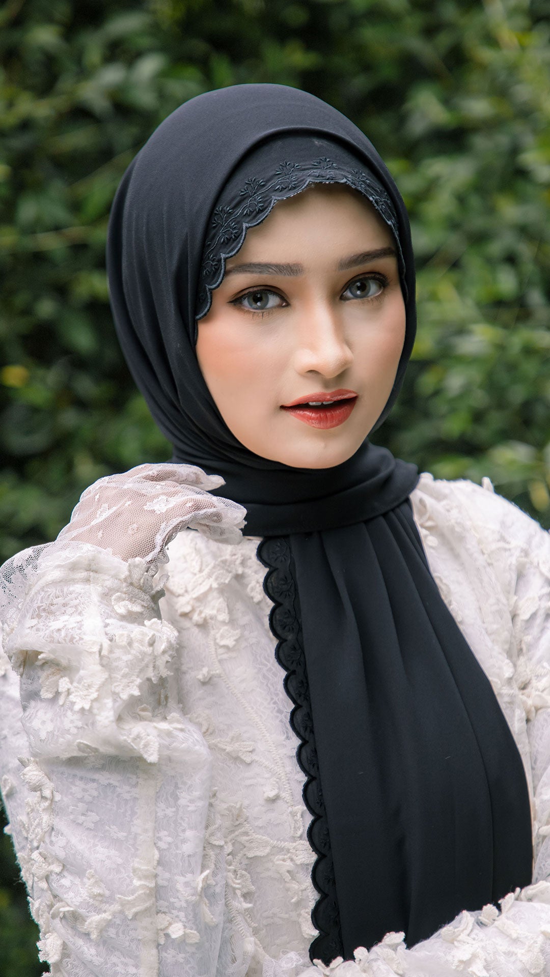 The shawl shapes effortlessly around the face, allowing for neat, structured styling or soft, flowy drapes depending on your preference. The elegant sulam (embroidery) detail inspired by the Teratai flower adds a subtle yet sophisticated charm a refined accent that elevates even the simplest outfit.
