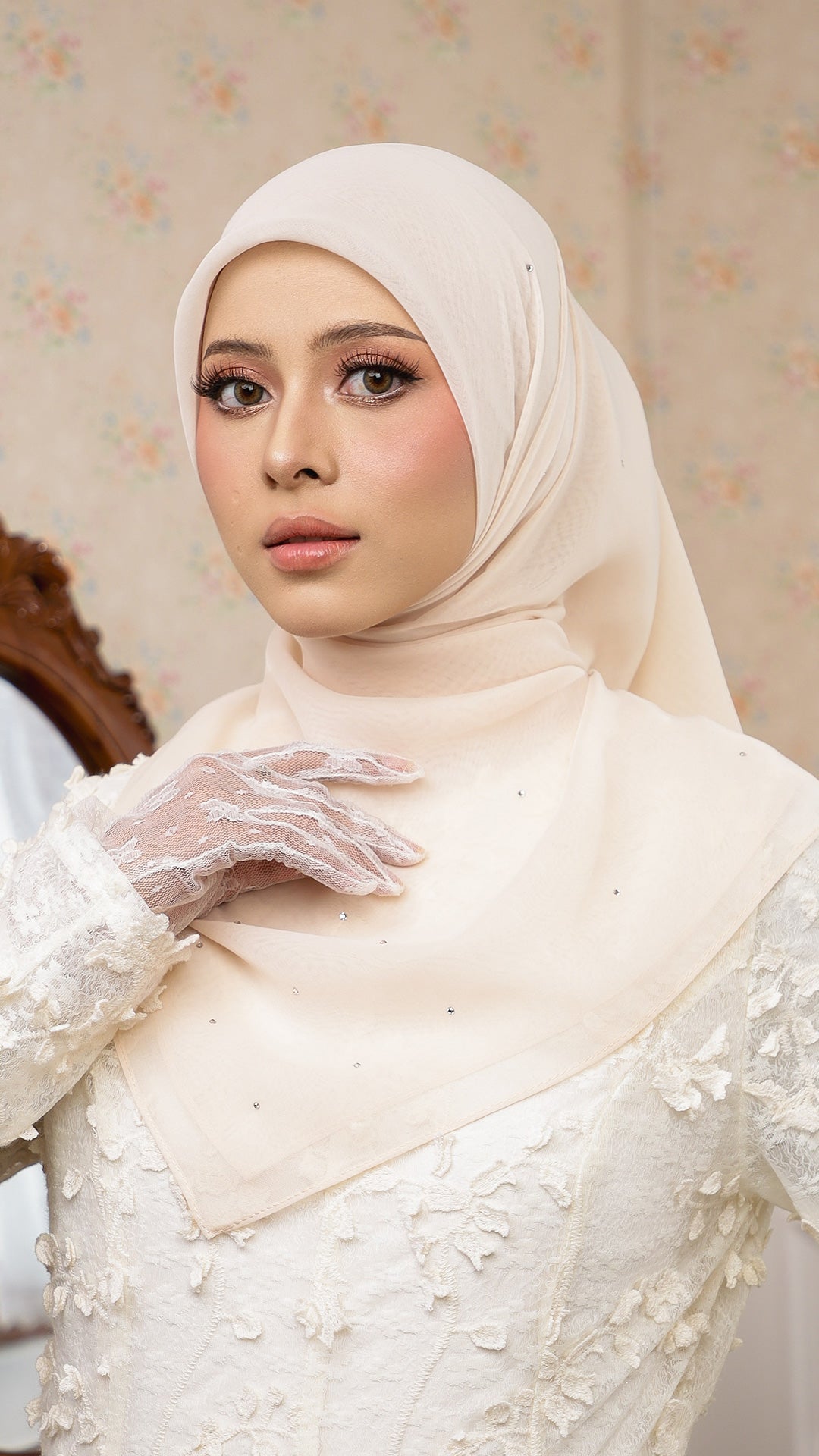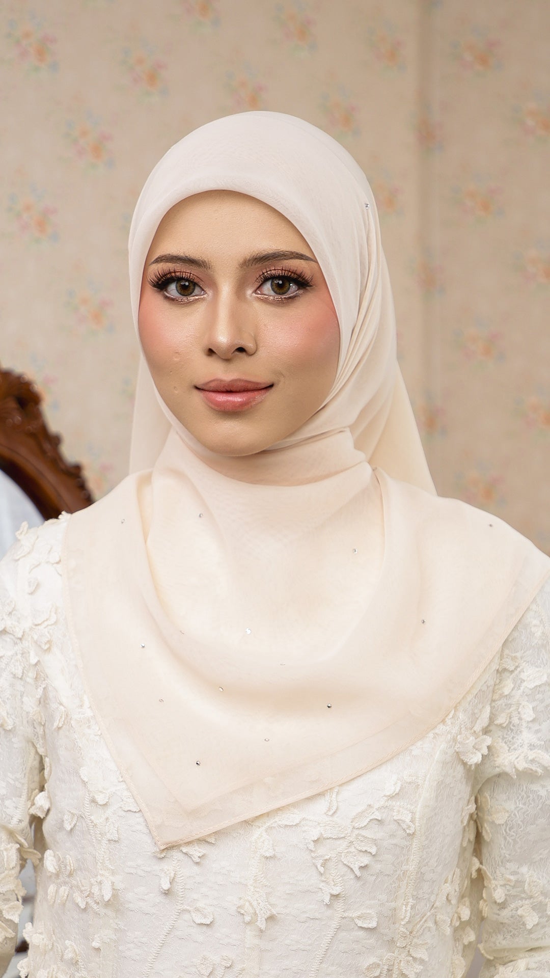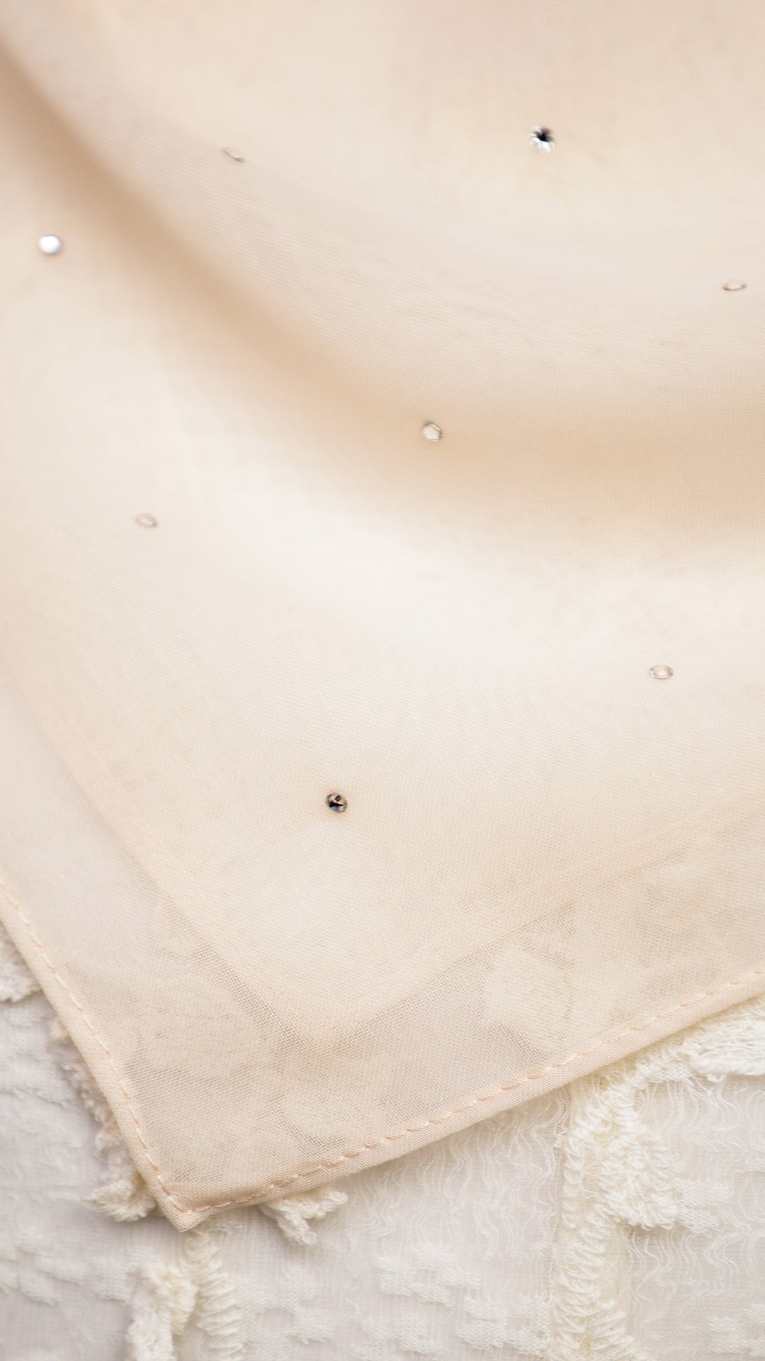The Sofia Bawal represents a refined approach to contemporary hijab styling. This 45 x 45 inch square combines Japanese Voile a breathable, lightweight fabric prized for its fluid drape with authentic Swarovski crystals for subtle luminosity. With a 7/10 opacity rating, it delivers substantial coverage without compromising comfort or visibility.