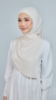 Effortlessly stylish and comfortable, this half moon shaped shawl features an attached inner layer. Made with Baesic Premium Chiffon, the material is both cooling and breathable, with a high level of opacity. It's also impressively absorbent, stretchable, and ironless, making it a versatile addition to any wardrobe. Plus, an adjustable tie back band ensures a perfect fit every time. Say goodbye to uncomfortable layers with Ella Ezy.