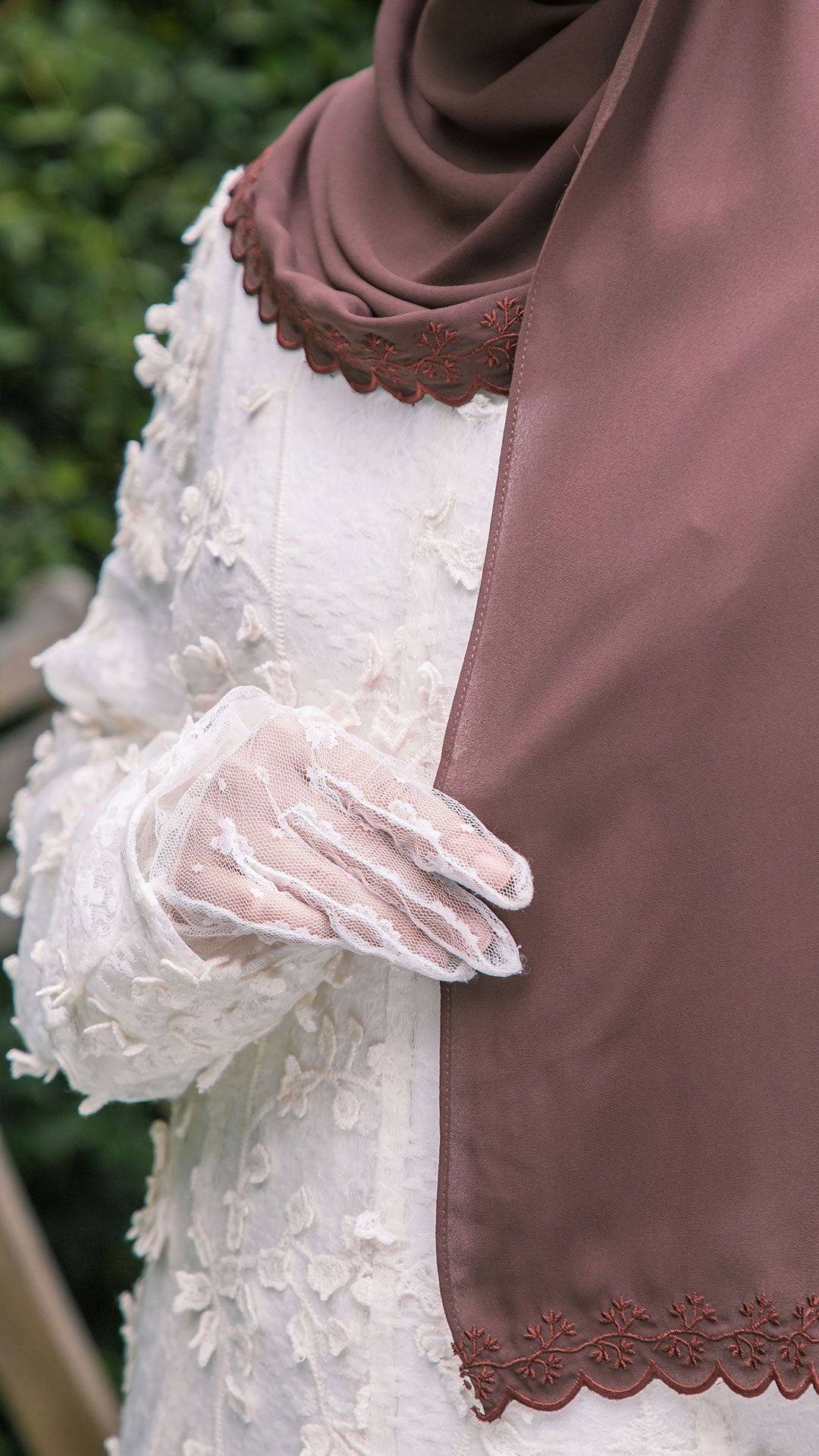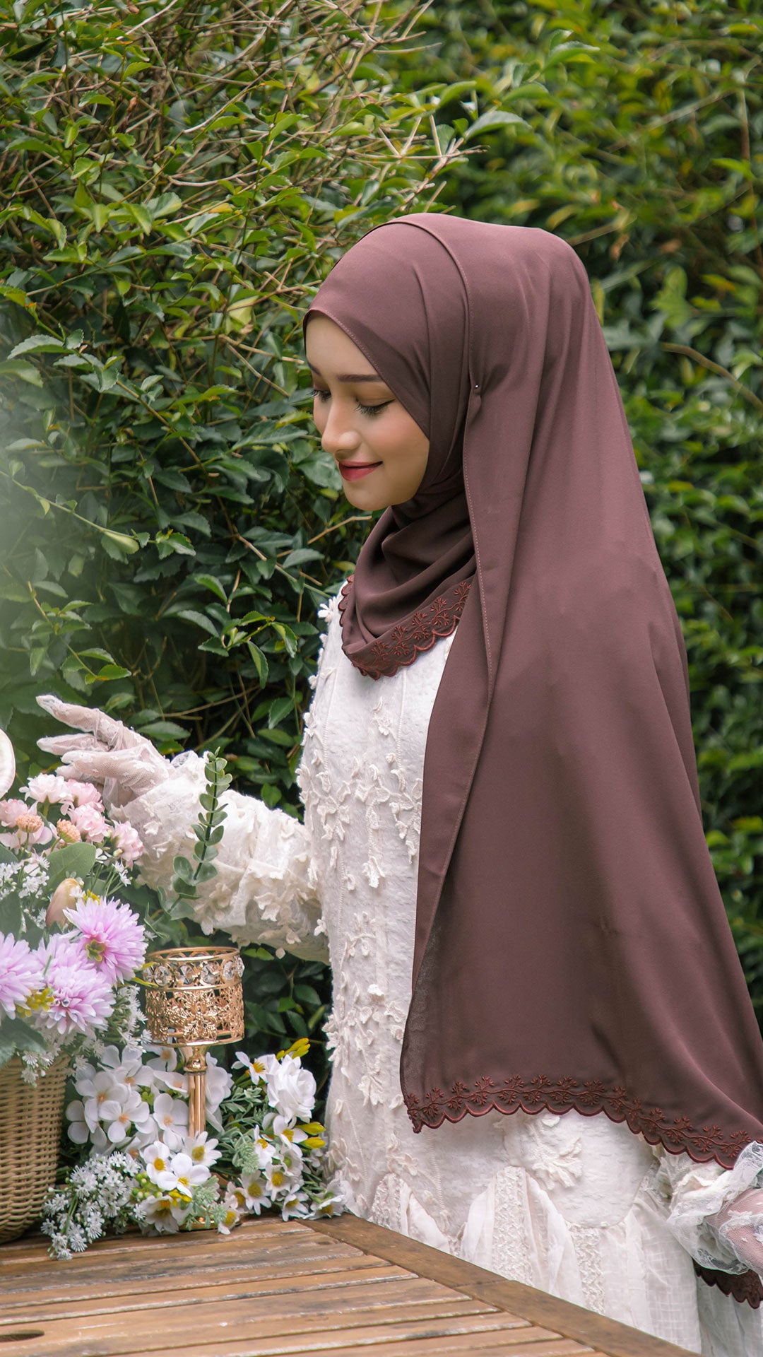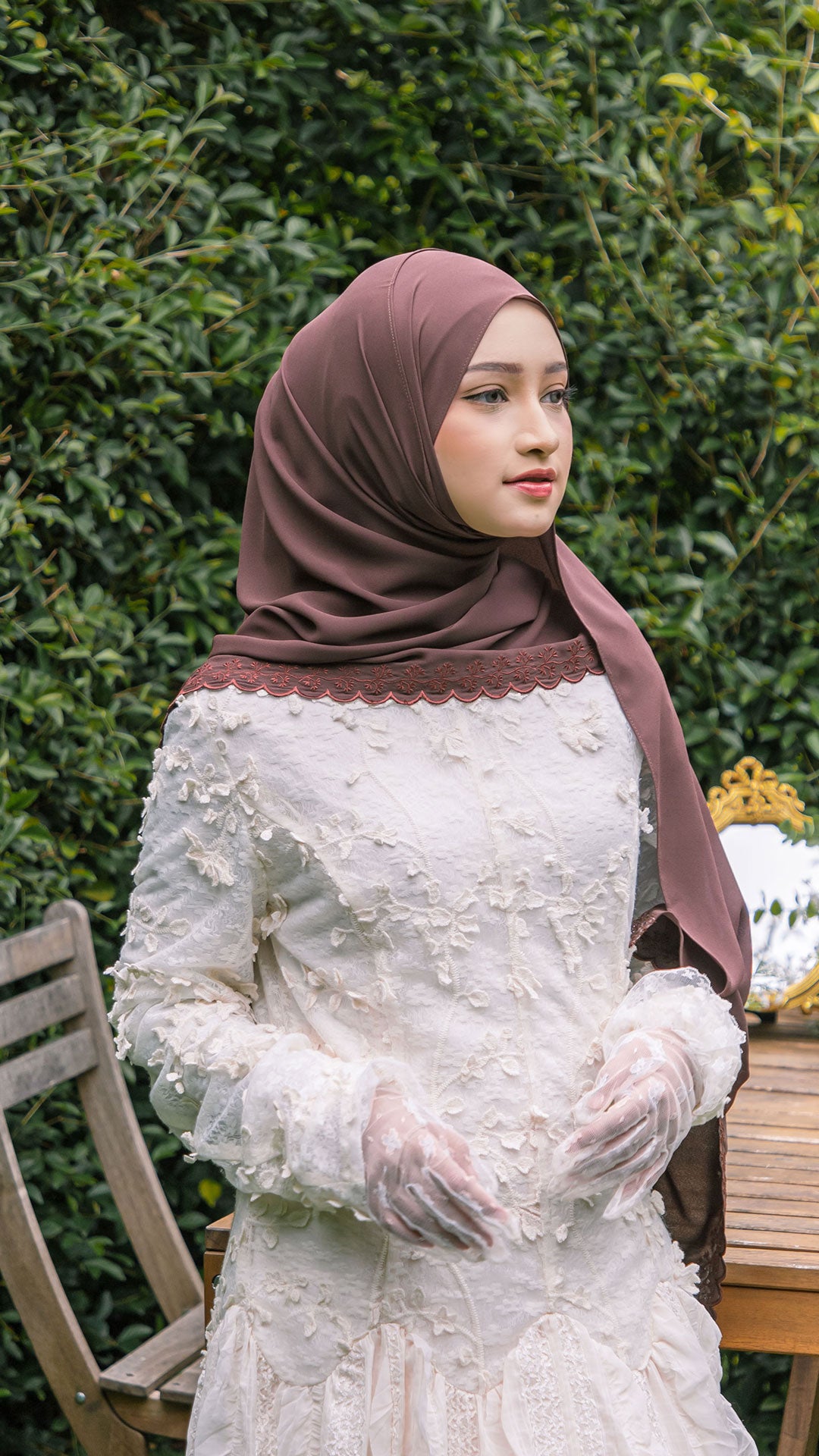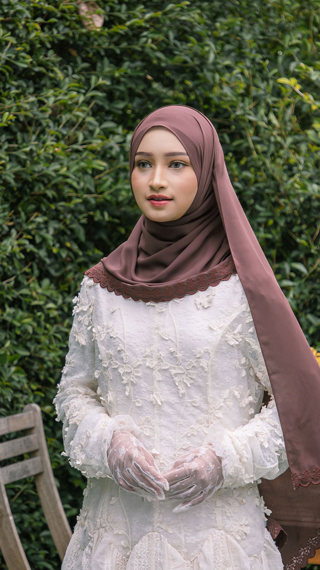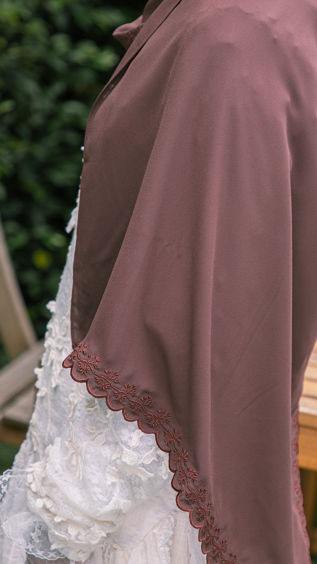 The shawl shapes effortlessly around the face, allowing for neat, structured styling or soft, flowy drapes depending on your preference. The elegant sulam (embroidery) detail inspired by the Teratai flower adds a subtle yet sophisticated charm a refined accent that elevates even the simplest outfit.