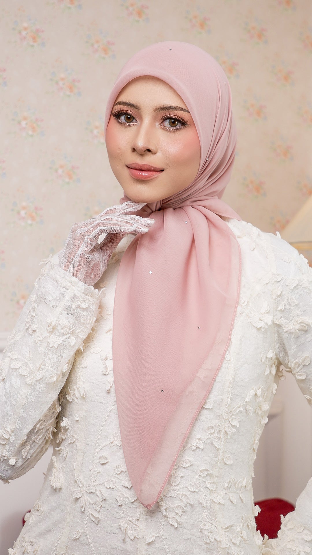The Sofia Bawal represents a refined approach to contemporary hijab styling. This 45 x 45 inch square combines Japanese Voile a breathable, lightweight fabric prized for its fluid drape with authentic Swarovski crystals for subtle luminosity. With a 7/10 opacity rating, it delivers substantial coverage without compromising comfort or visibility.