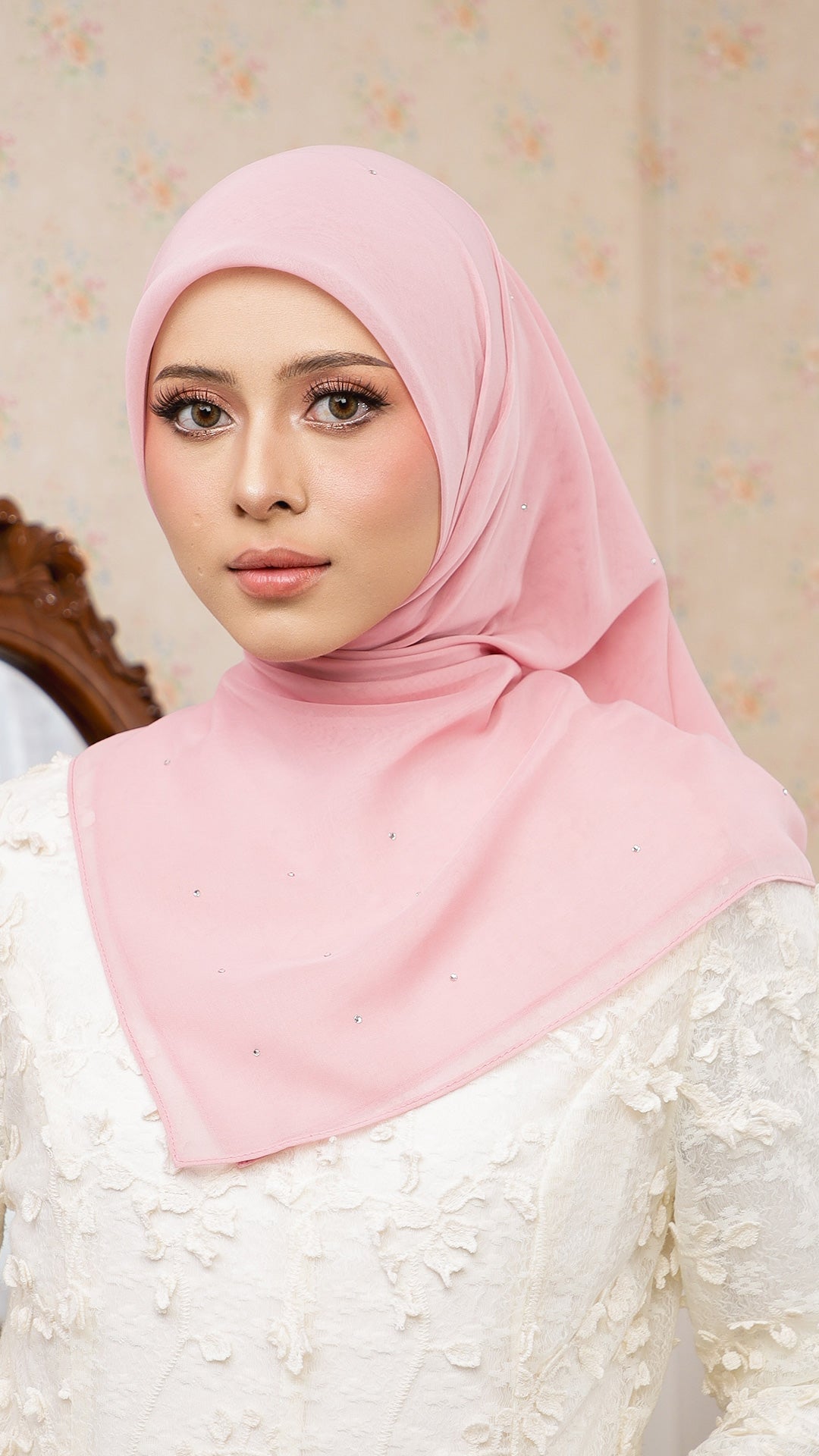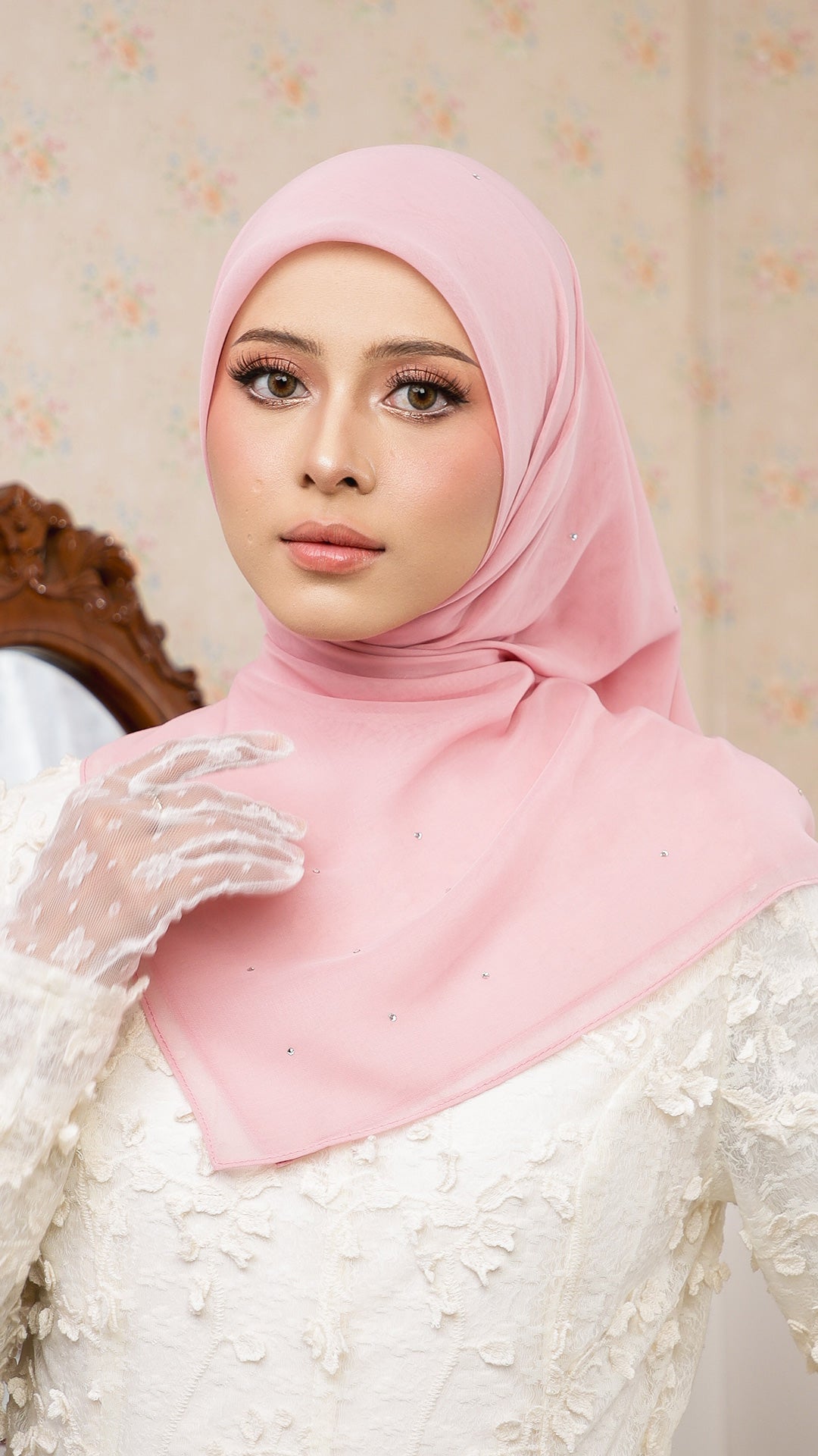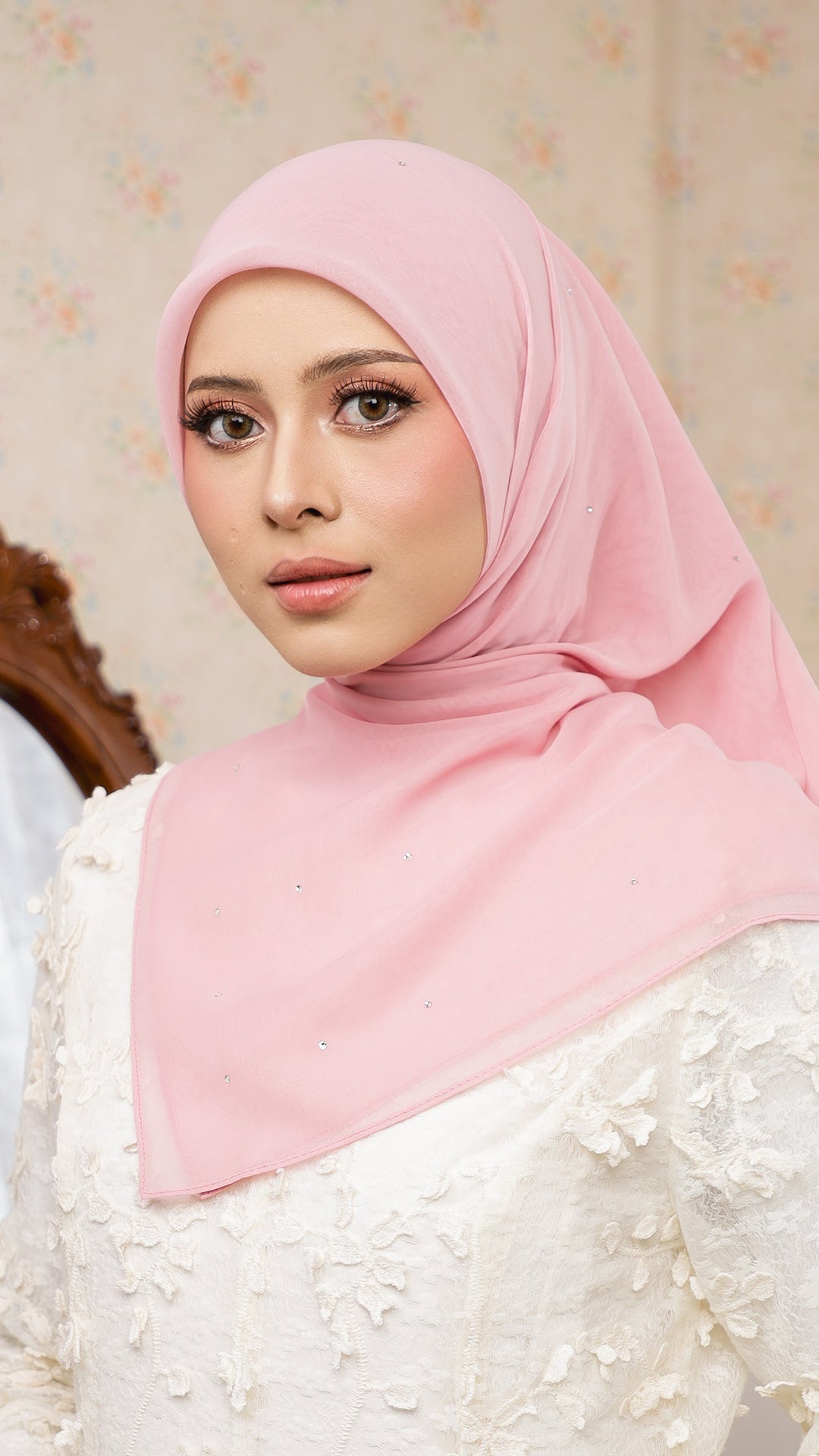 The Sofia Bawal represents a refined approach to contemporary hijab styling. This 45 x 45 inch square combines Japanese Voile a breathable, lightweight fabric prized for its fluid drape with authentic Swarovski crystals for subtle luminosity. With a 7/10 opacity rating, it delivers substantial coverage without compromising comfort or visibility.