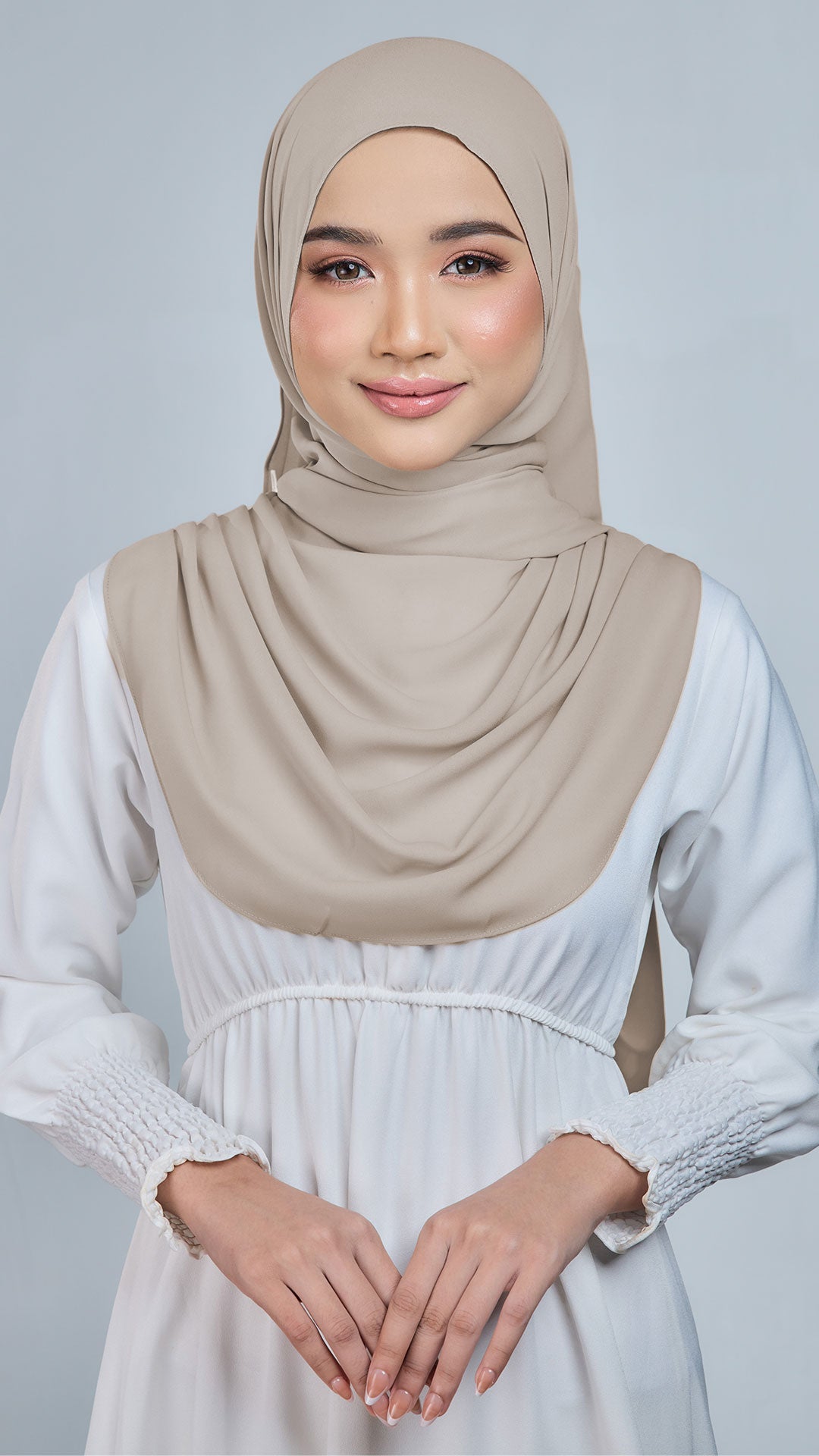 Baesic Chiffon Shawl with curved end is the perfect shawl to add some lightness and flow to any look. Long 2m wide coverage and it's so lightweight, it's like wearing a whisper of coolness! And, with babyseam finishing, it's a basic piece you can't do without. Be breezy and beautiful with this must-have shawl!