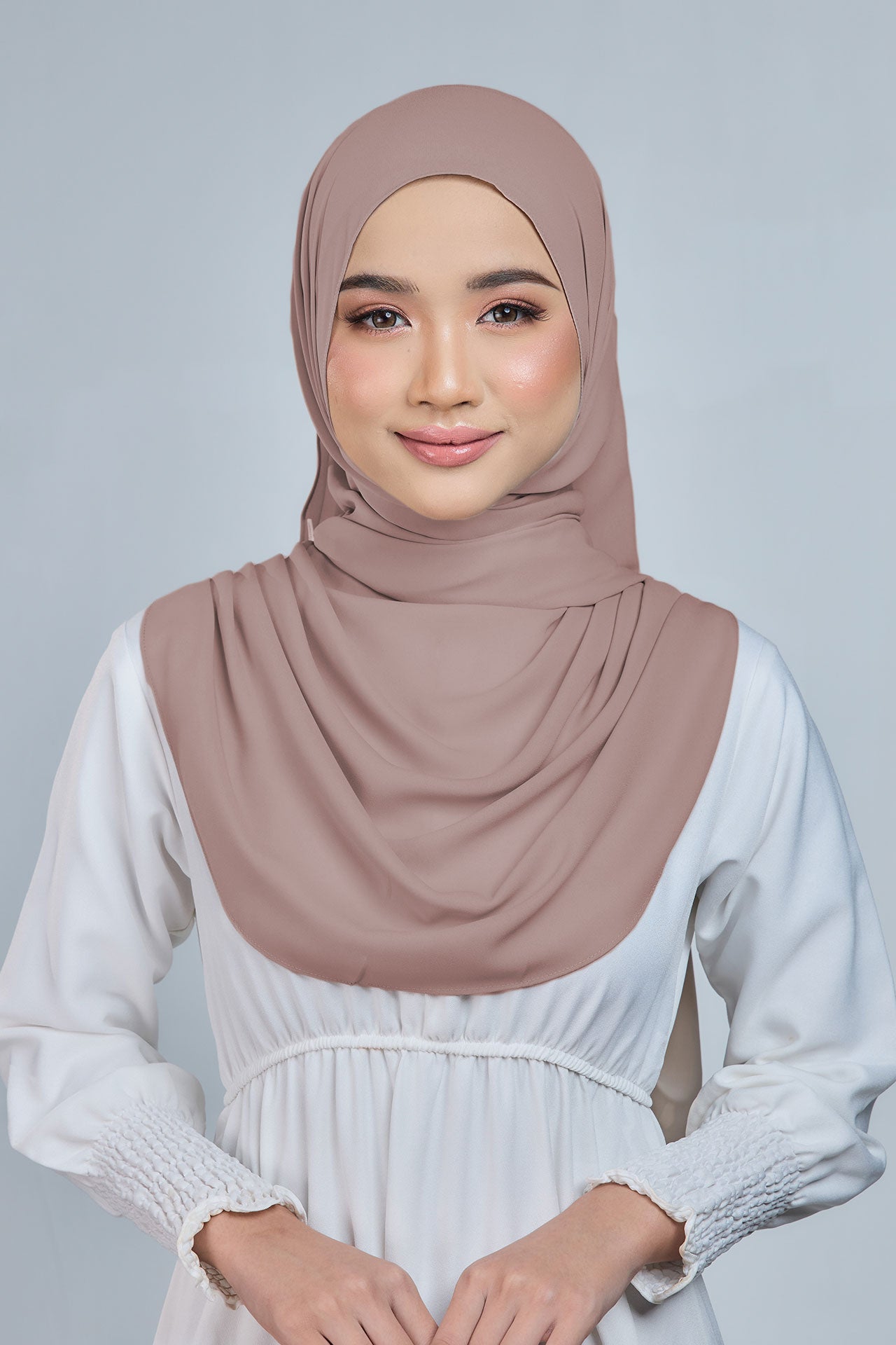 Made from Baesic Premium Chiffon, the Kyra Ezy is a 2-meter shawl designed with an attached tieback inner to ensure a secure and convenient fit. With dimensions of 2m by 0.7m and an included inner, this adaptable accessory offers both graceful draping and practical ease. Additionally, Kyra is available with an optional chinstrap for enhanced stability.