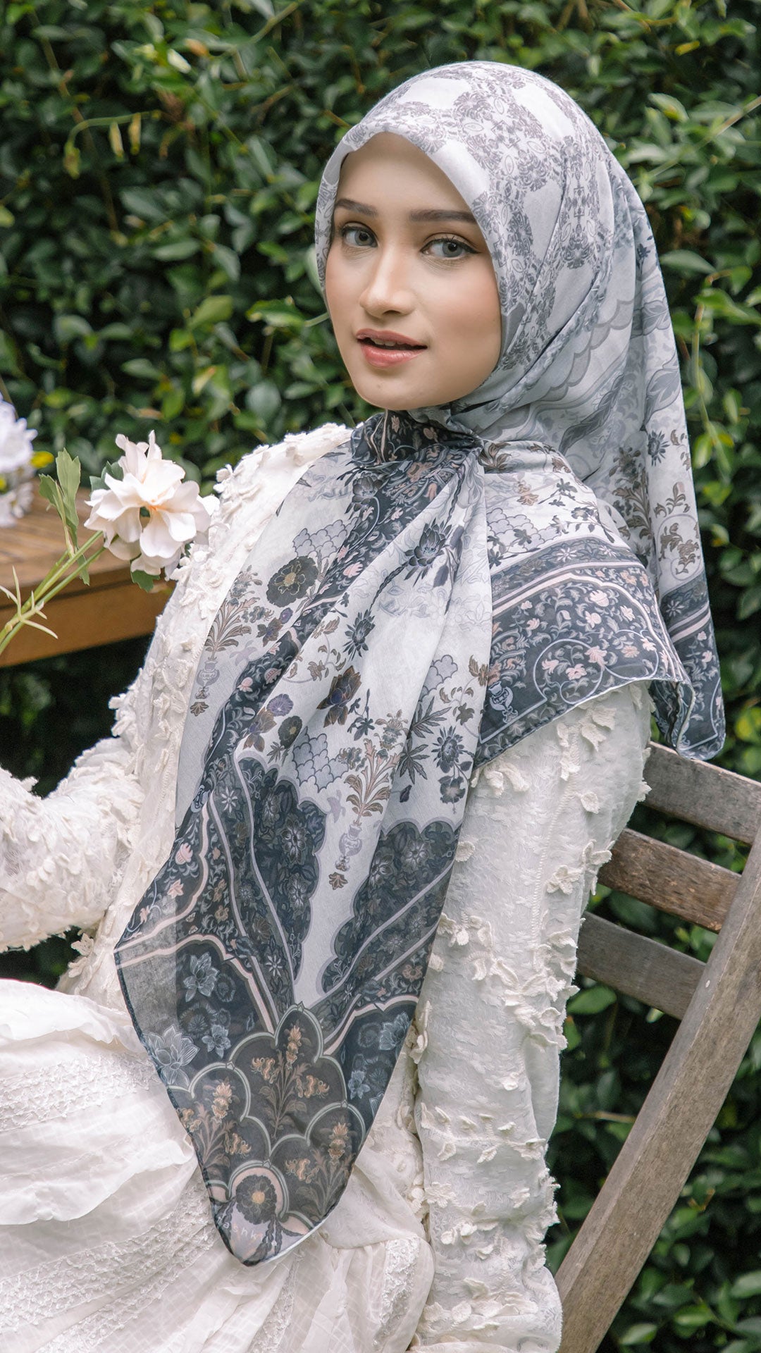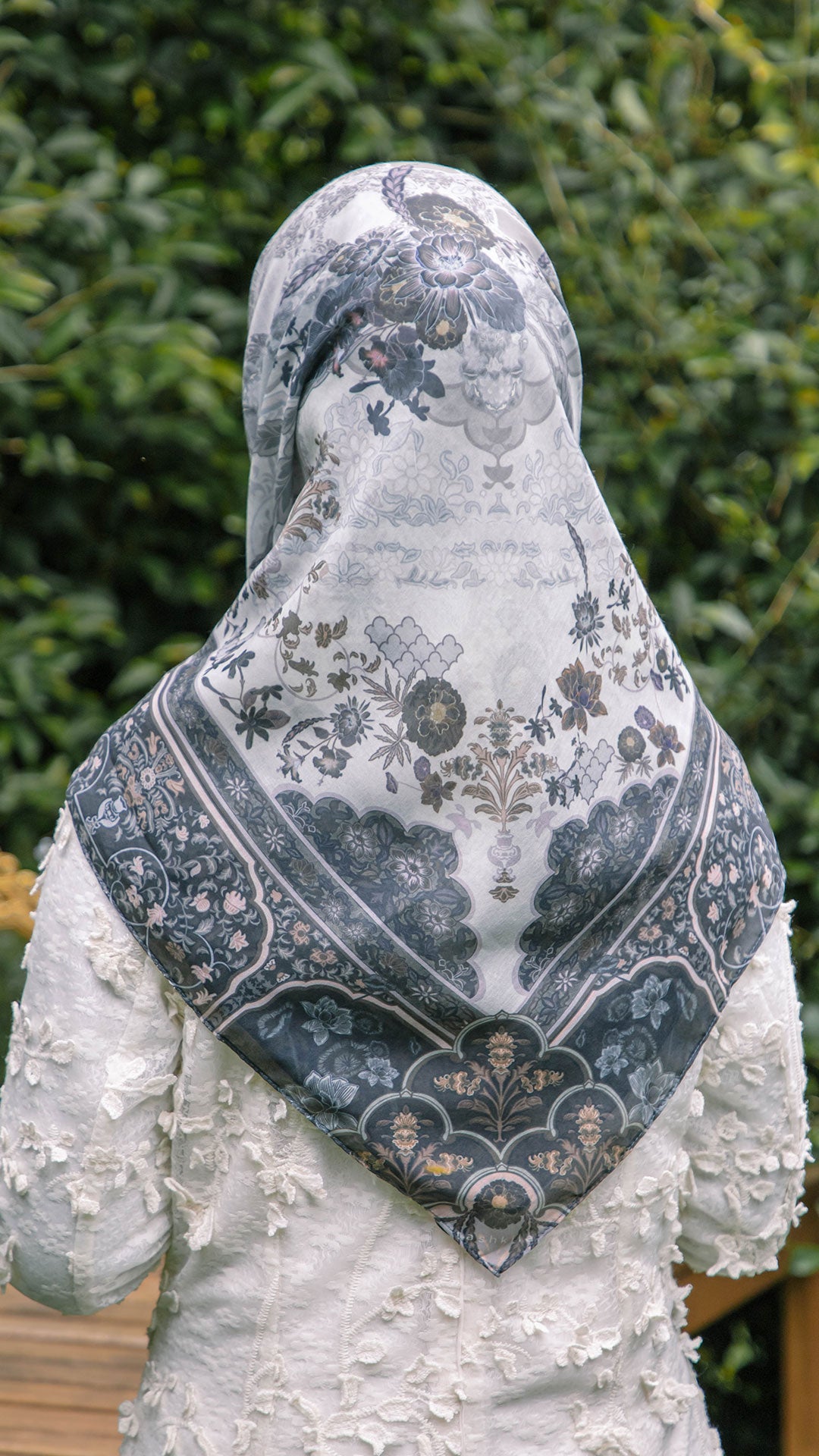 Crafted from Premium Japanese Cotton Voile, the scarf offers an airy drape with a soft, breathable touch light upon the skin yet refined in presence. The generous 47 x 47 inch cut allows effortless styling, whether worn structured or flowy.